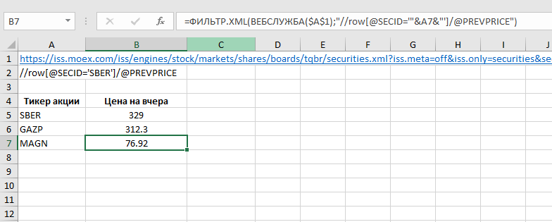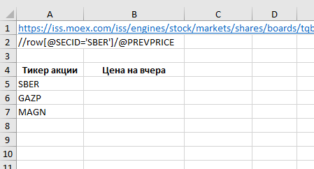 Free API Мосбиржи в формулах Microsoft Excel
