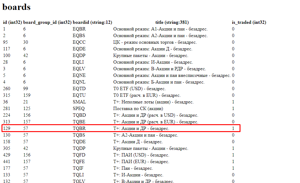 Идентификатор режима торгов
