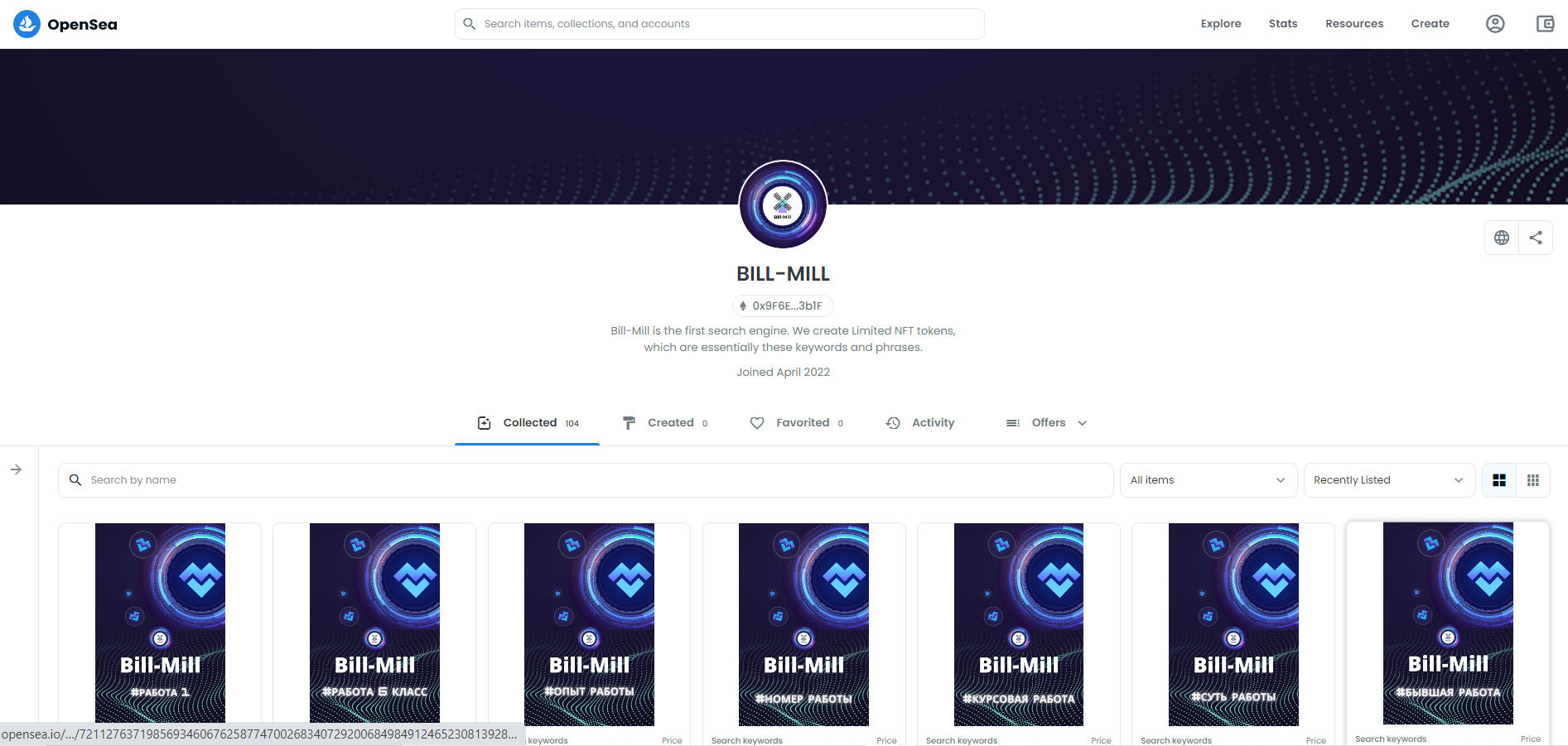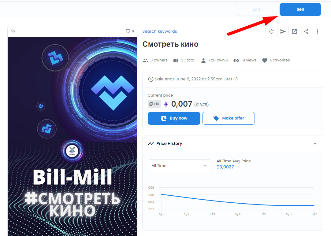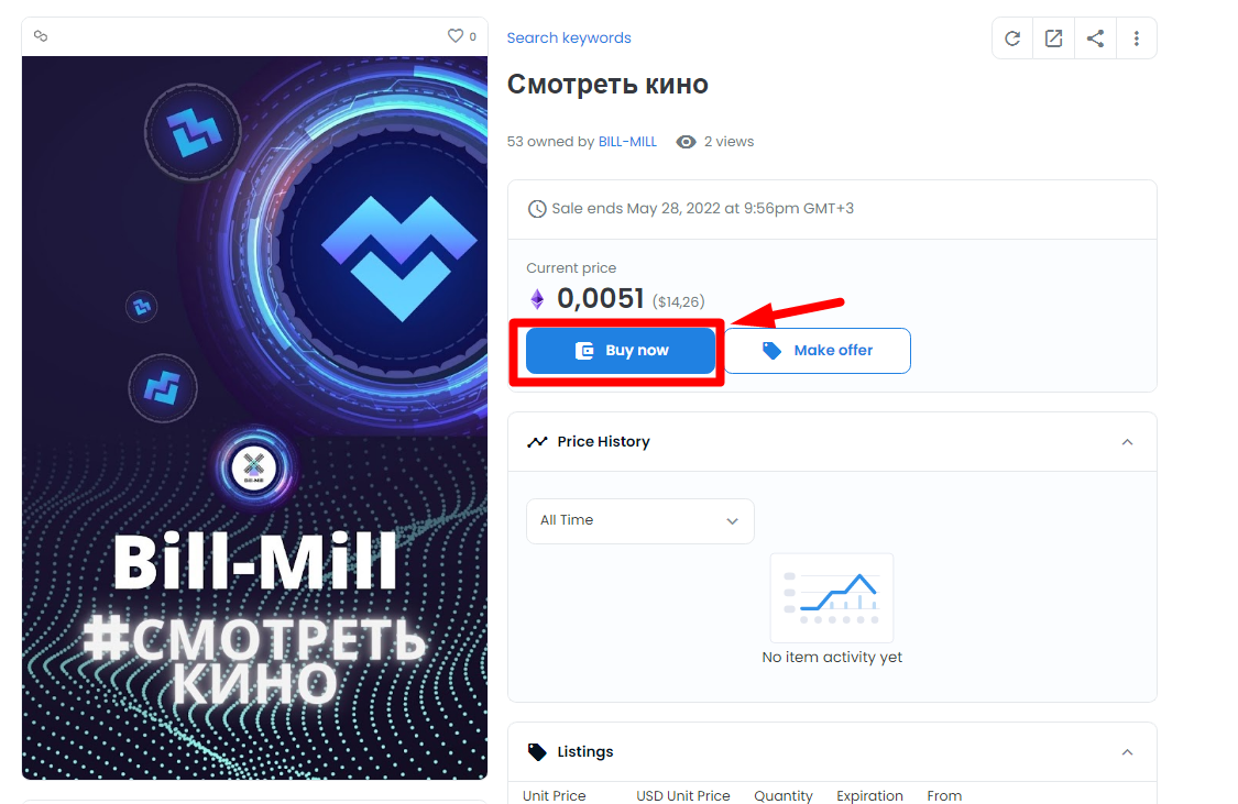 NFT Bill-Mill можно купить здесь: https://opensea.io/BILL-MILL