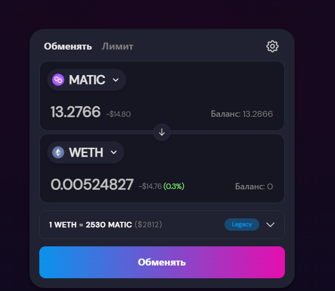 2.4. Делаем обмен токена Matic на WETH