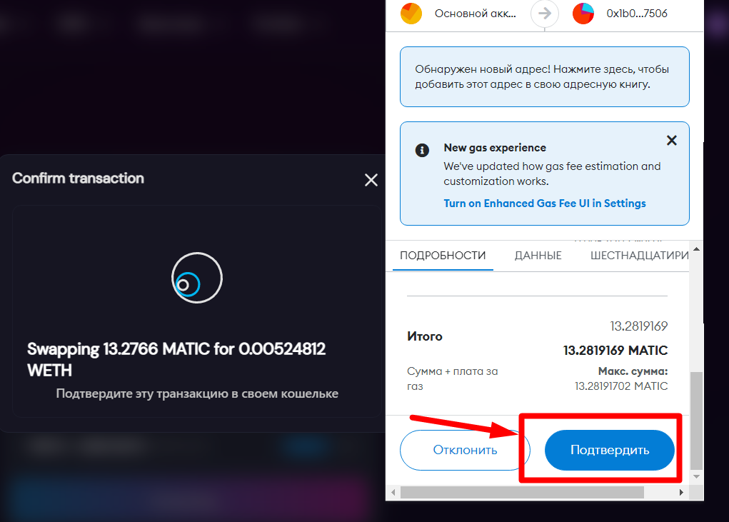 2.9. Подтверждаем транзакцию в кошельке