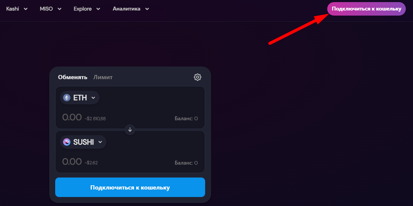 Воспользуемся децентрализованной биржей SushiSwap: https://app.sushi.com/ru/swap